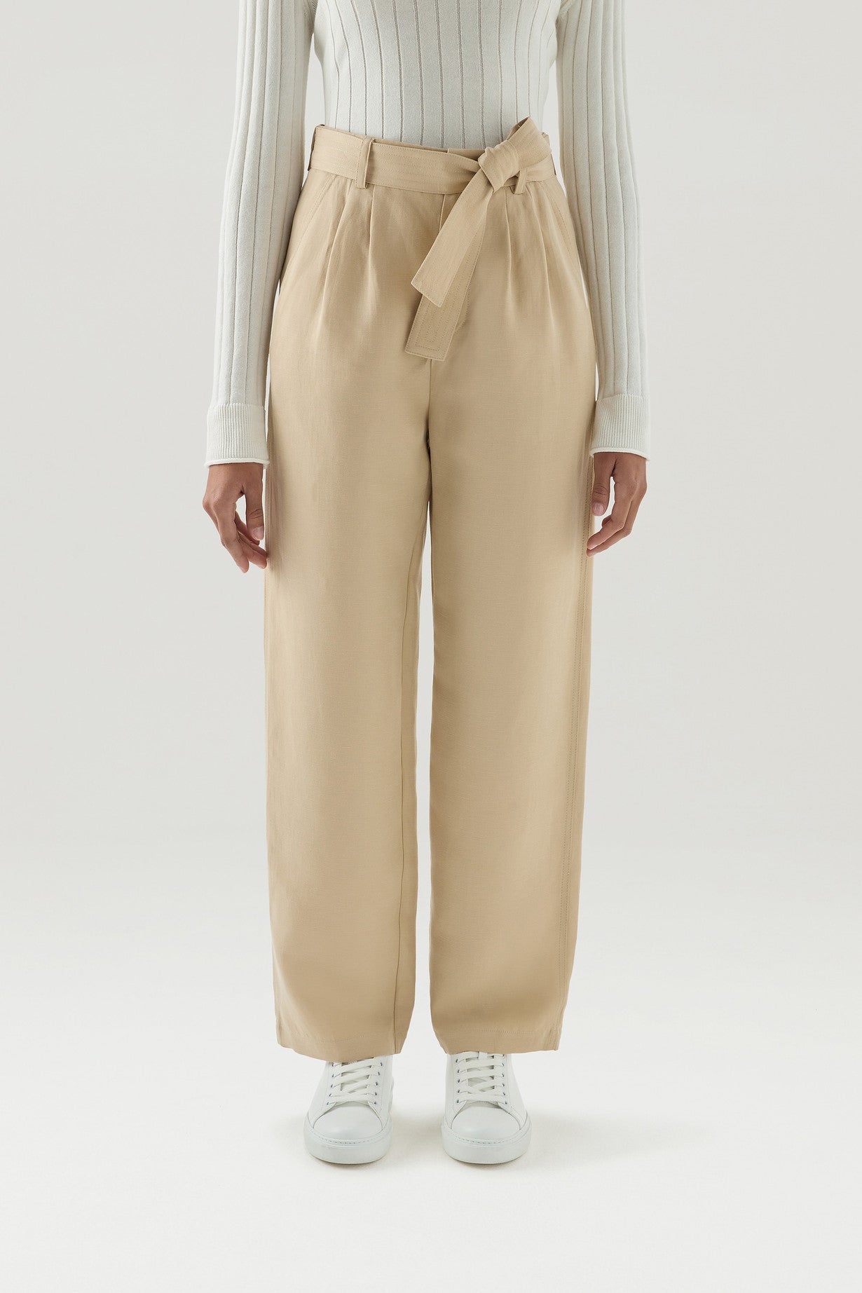 Belted Pants in Viscose Linen Blend FEATHER BEIGE