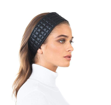 Revisit one of the 1990s most popular fashion trends with this deeply padded wide quilted band of vegan leather, imported from Italy which genuinely looks and feels like the softest lamb leather. Discreet elasticized panel in the back adjusts to most head sizes.