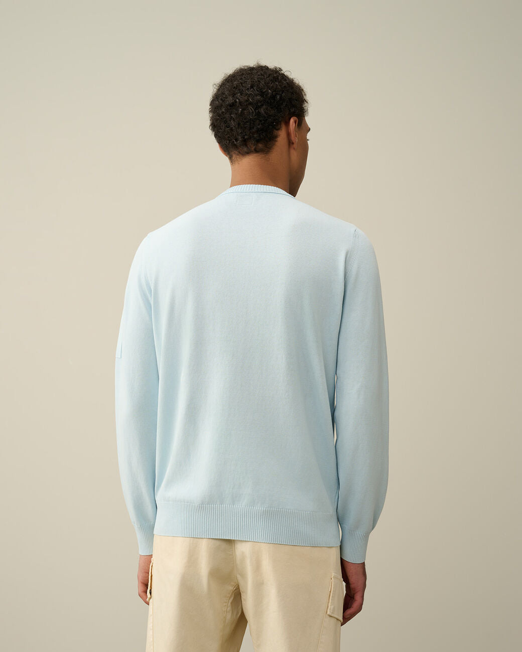 Crew neck jumper crafted with a ribbed collar, cuffs and hem, featuring a Lens detail on the sleeve pocket. Knit in a 12 gauge fine cotton crepe, which is both lightweight and insulative, and garment dyed, for an increased chromatic depth and intensity throughout. Regular fit.