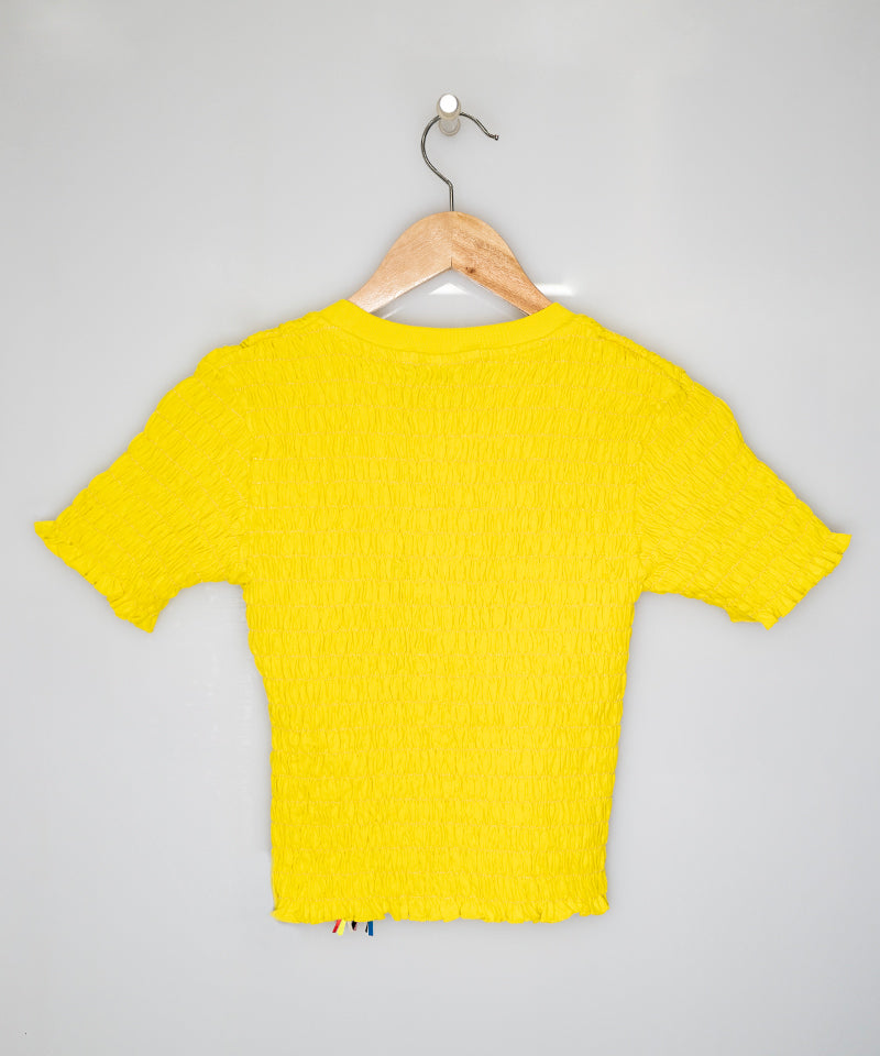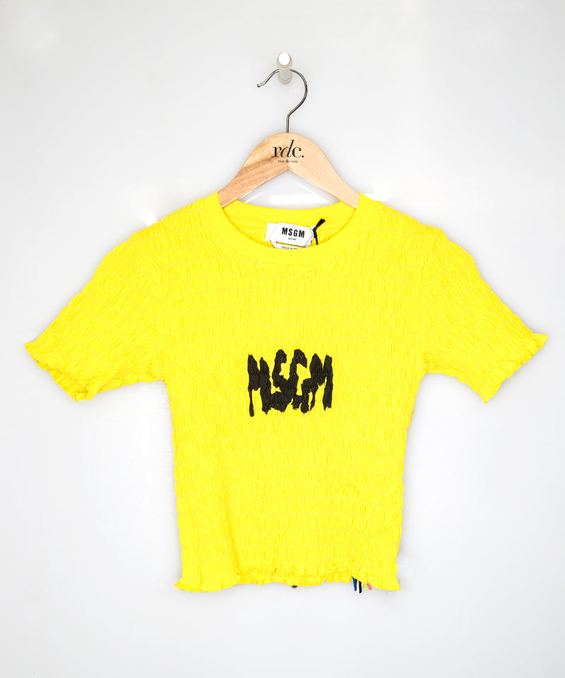 Solid color cotton crop-top crewneck t-shirt with new brushed MSGM logo. Short sleeves and crewneck collar. Smock stitch. Regular fit.