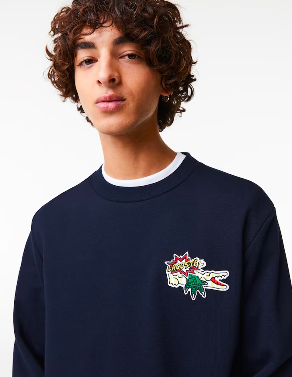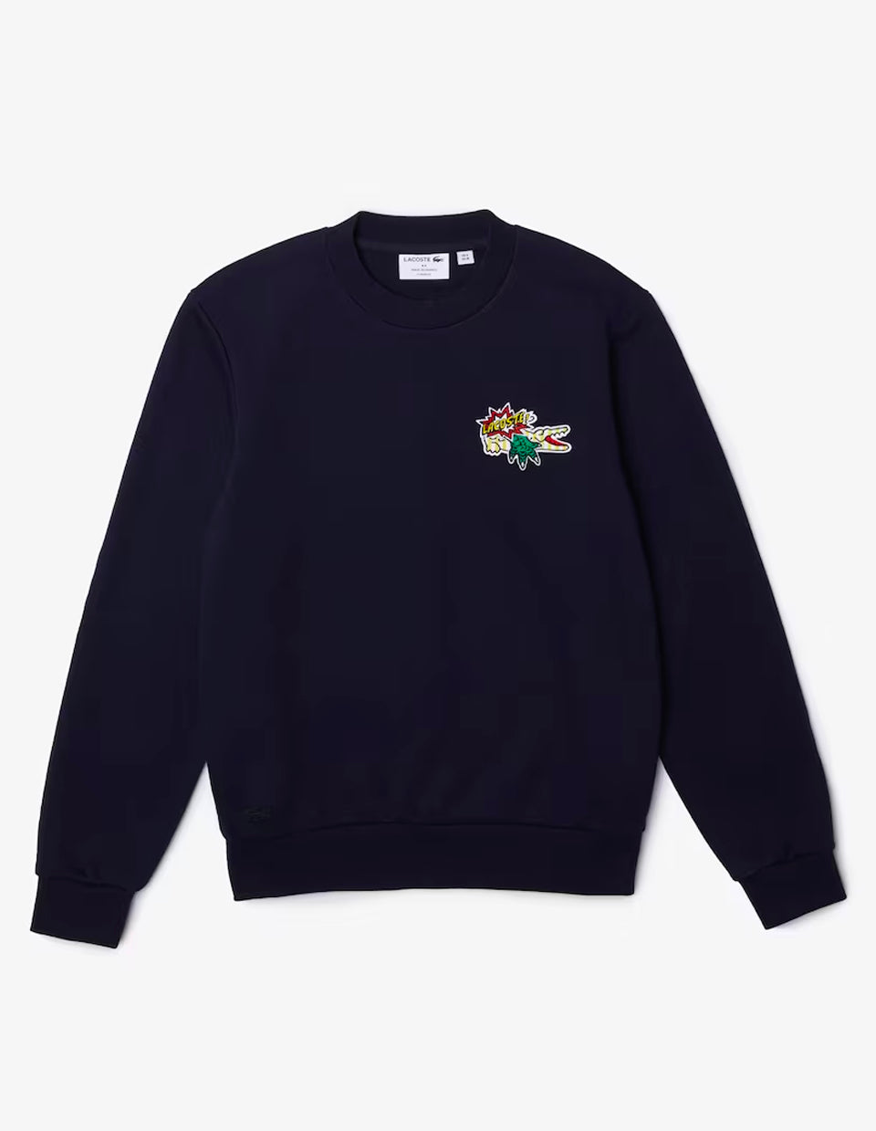 All of Lacoste's signature trademarks are packed into one responsible sweatshirt. Timeless crocodile style with a whimsical patch.